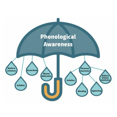 Phonological awareness is a broad skill that involves the ability to recognize and manipulate the sounds of spoken language. It includes the capacity to identify and isolate individual sounds (phonemes), syllables, and rhymes in words. This awareness allows a learner to realize that the word "cat" comprises three distinct sounds: /c/, /a/, /t/.